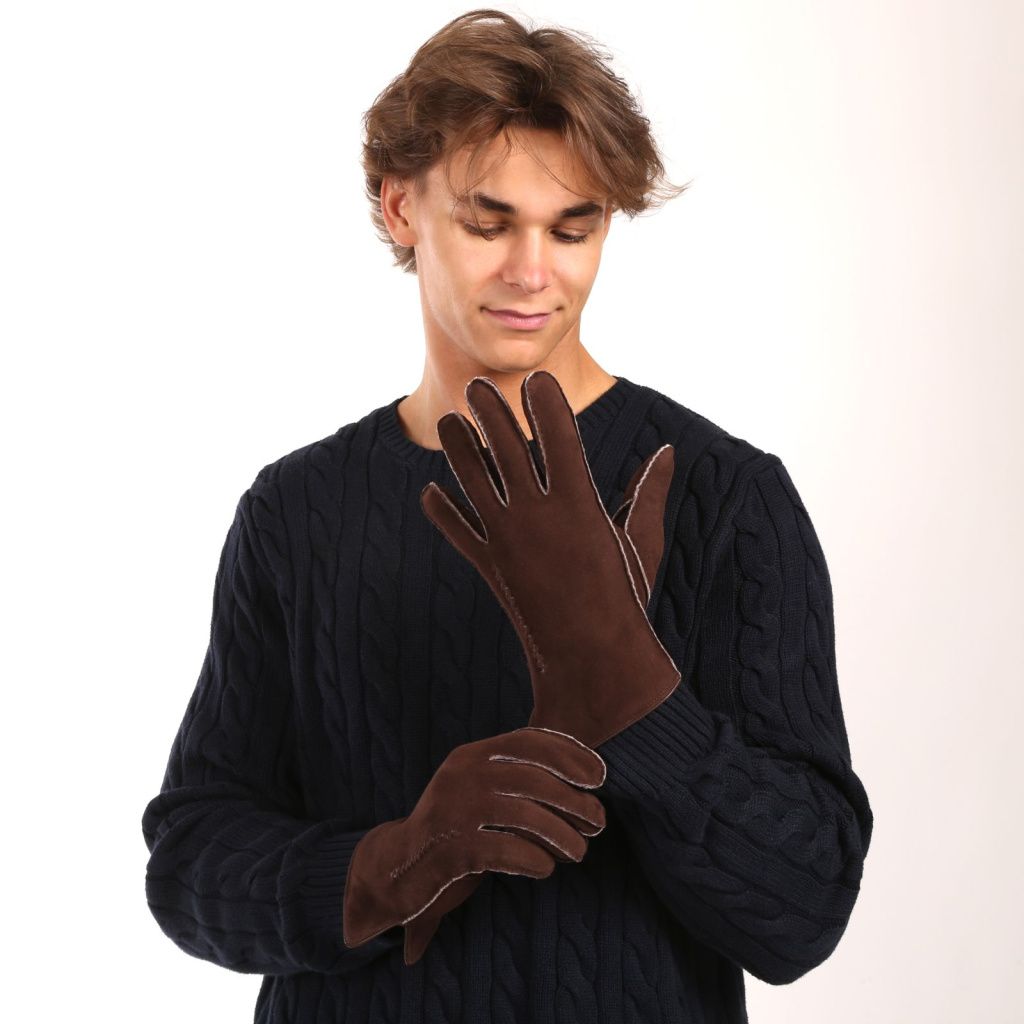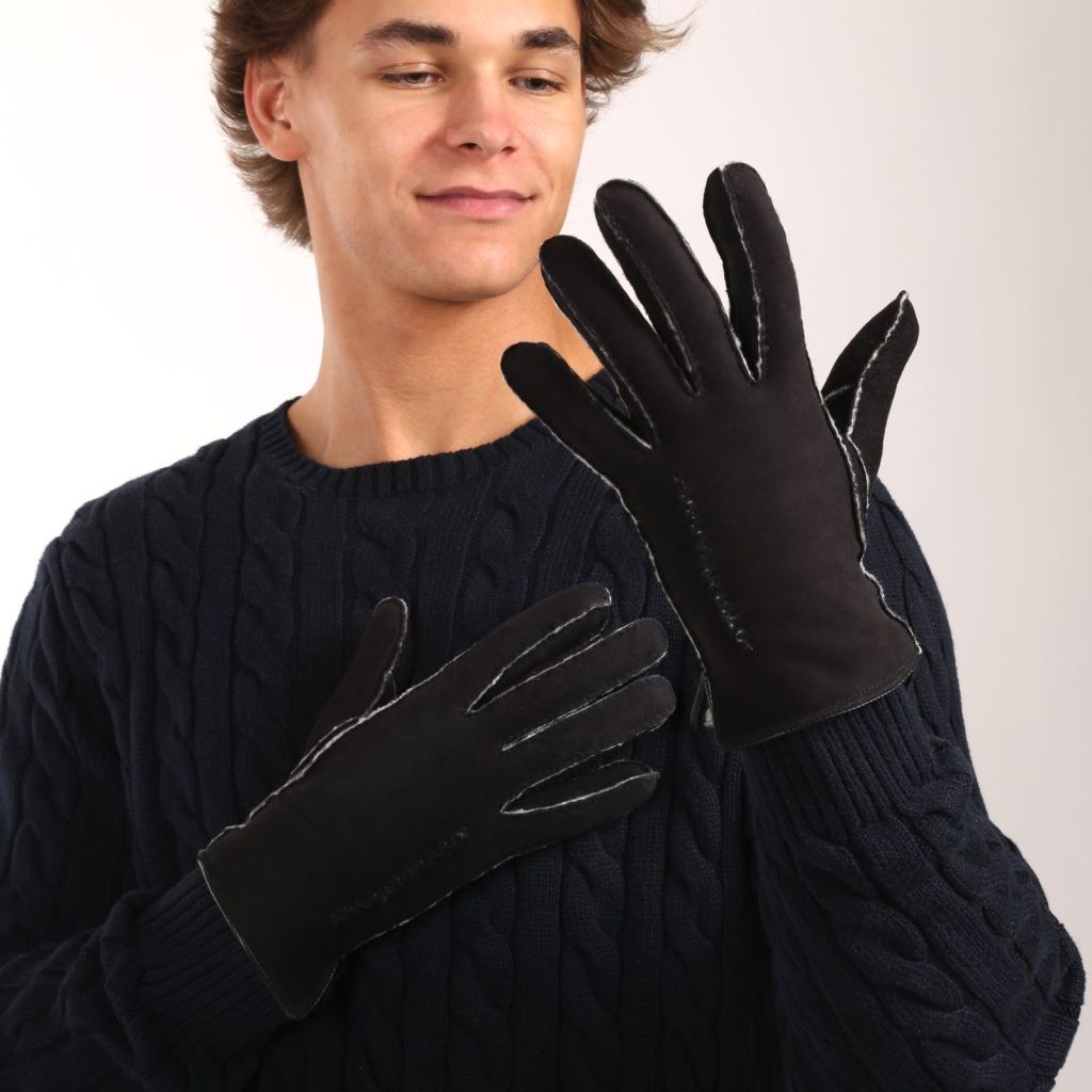Pánské rukavice s pravým beránkem z broušené kůže